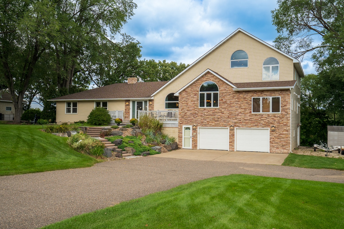 Vistas fantásticas, COZINHA NOVA, inúmeras comodidades e muito espaço para grupos grandes. Venha descansar no rio Mississippi. Localizado a 15 minutos a norte do centro de Minneapolis e a 20 minutos de St. Paul, experimente as comodidades da cidade enquanto está rodeado de beleza ao ar livre. A banheira de hidromassagem está disponível durante todo o ano, bem como a cadeira de massagem. Esta casa grande é ideal para reuniões de família/amigos e retiros de trabalho. Muito espaço para se espalhar com um bar de café abastecido e muitas outras comodidades.