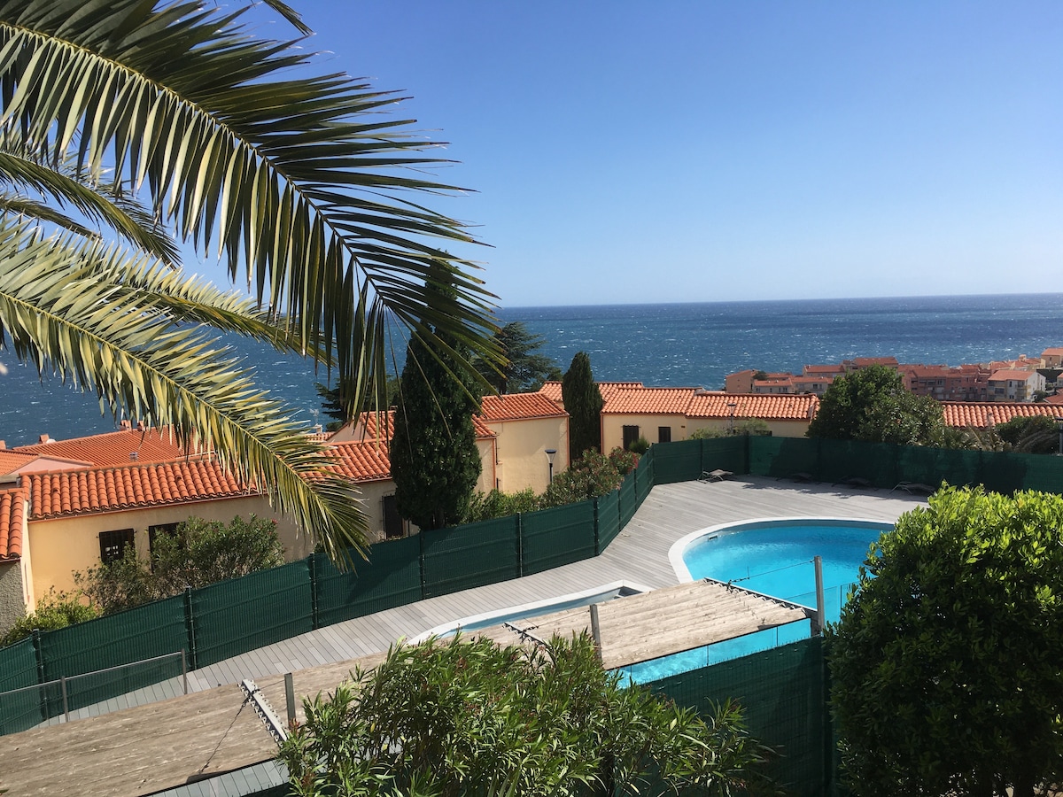 Verdadeiramente excecional😍 num ambiente extraordinário🏖. Bela vista para o mar🌊; tem uma enseada ao pé da residência e uma piscina infinita encantadora. Desfrute do encanto🌄 da Costa Vermeille e do trilho costeiro 🚴♂️🏃♀️ que corre ao longo desta bela residência, renovada em 2025. Apartamento de 35 m² (377 pés quadrados) luminoso, funcional e soberbamente equipado, com❄️ ar condicionado e🅿️ um lugar de estacionamento privativo numerado. Relaxe🍹 no seu grande terraço de 15 m², protegido da tramontana🌞.