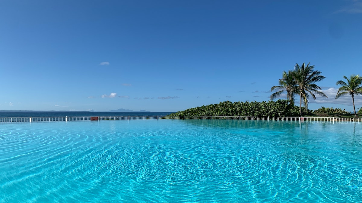 Bem-vindo ao Paradis Bleu, um estúdio renovado, equipado para o seu conforto, com varanda e vistas deslumbrantes para o mar. Desfrute do terraço para tomar um café de frente para o oceano, relaxe na piscina (pulseiras fornecidas, piscina gerida por uma empresa externa) ou vá diretamente para a praia do complexo. Tudo está planeado para umas férias despreocupadas: cama queen size, ar condicionado, Wi-Fi, roupa de cama fornecida, crachá de estacionamento... e até um tanque de água para compensar as falhas de energia.