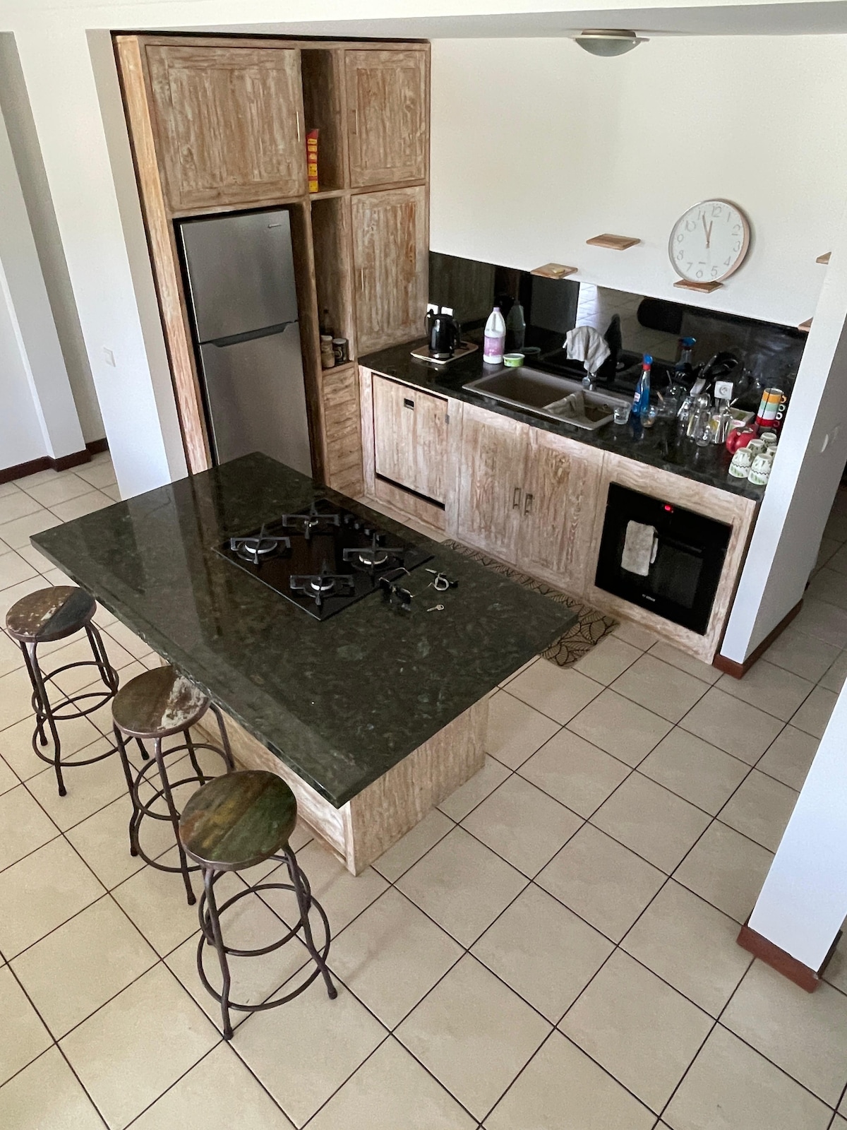Simplifique a sua vida neste espaço tranquilo e central. F3 de 55M2 totalmente equipado. Localizado no bairro Motor Pool numa rua residencial tranquila. 1 quarto com uma cama grande 180 e 1 outro com 2 camas em 90. Todos equipados com um walk-in closet , ar condicionado com persianas. Perto de todas as comodidades, supermercado Michel Ange a 5 minutos a pé, padaria, farmácia, ginásio, aluguer de carros e restaurantes. A Praia de Anse Vata fica a 10 minutos a pé.