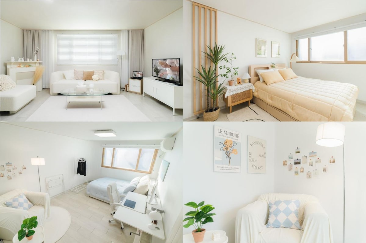 É uma área de estação dupla com muitos ônibus diretos, a 35 minutos de trem da Estação de Seul, a 10 minutos a pé da Estação de Suwon e a 40 minutos de ônibus de Gangnam. É uma localização conveniente para viajar para Suwon Rodeo Street e Suwoncheon Promenade, que ficam a 5 minutos a pé, e Suwon Hwaseong e Hwaseong Haenggung, que ficam nas proximidades. Você pode desfrutar do conforto de um espaço privado usado por apenas uma equipe e da vitalidade de uma cidade jovem. O espaço interno, que consiste em um quarto grande com 1 cama queen e 1 cama de solteiro, uma pequena sala com 1 cama queen, uma cozinha equipada com todos os utensílios necessários para cozinhar, uma mesa de jantar, uma banheira e uma lavanderia, é uma estrutura que você pode usar de forma confortável e familiar, como sua própria casa.