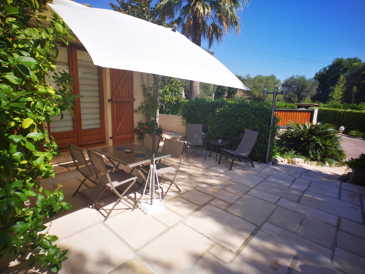 Petit STUDIO très bien équipée avec entrée et parking privé dans une grande Propriété avec piscine et jacuzzi chauffés du 10 avril au 30 octobre . La piscine extérieur et jacuzzi ainsi que le jardin sont partagés mais assez grand pour profiter chacun son espace de tranquillité . Je vis dans la bastide principale . Un Havre de Paix entouré d oliviers centenaires . A 35 minutes de l aéroport de Nice et divers villages provençaux et 14km de Cannes . Tele grand écran /abonnement Netflix