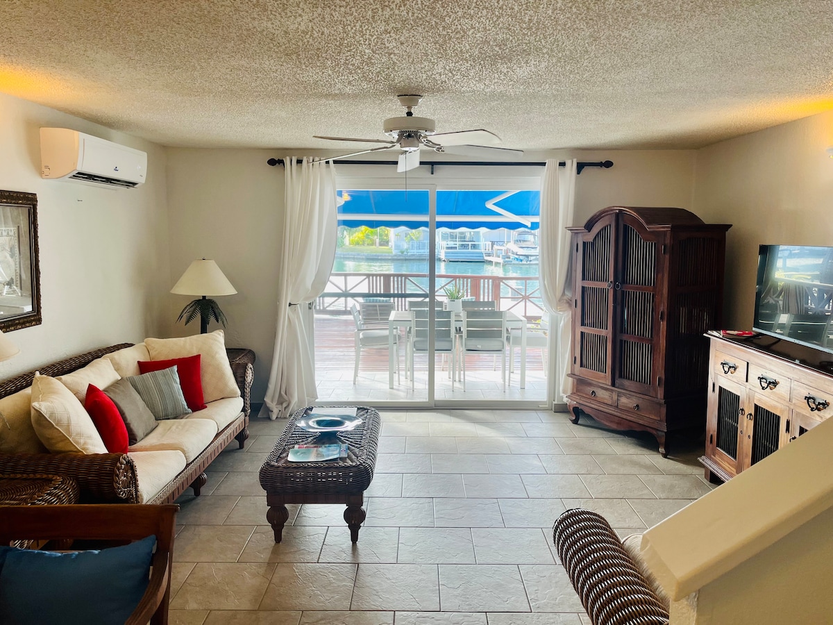 Townhome com 2 quartos, 2,5 banheiros, 1200 pés quadrados (111 metros quadrados). Deck privativo de frente para a água e 2 varandas com vista para o pôr do sol ocidental. Cozinha totalmente abastecida e equipada. Estacionamento privativo no local para carros menores; estacionamento para veículos maiores a poucos passos de distância. Comunidade fechada com restaurantes, bares e cafés, campo de golfe, marina, supermercado, bancos e agências de aluguel de carros. A 10 minutos a pé da praia norte e campo de golfe, a 20 minutos a pé de restaurantes, lojas, outras comodidades.