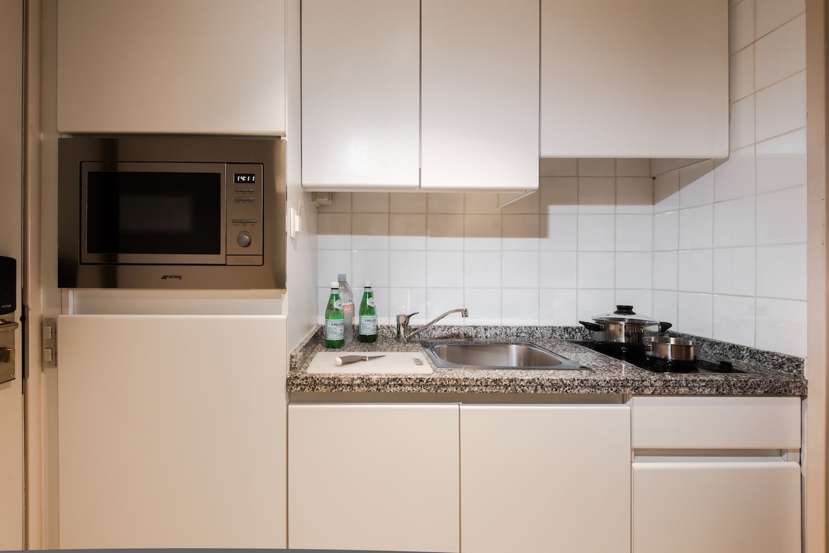 Este apartamento, com uma superfície de 55 m2, pode acomodar até 2 pessoas. Está equipado com duas camas individuais ou uma cama de casal (mediante pedido, sujeito a disponibilidade). Os serviços oferecidos : ar condicionado, acesso Wi-Fi de alta velocidade gratuito, TV de 40" e 32" com canais internacionais, cozinha equipada, casa de banho com chuveiro, secador de cabelo, berço mediante pedido (gratuito sujeito a disponibilidade)...