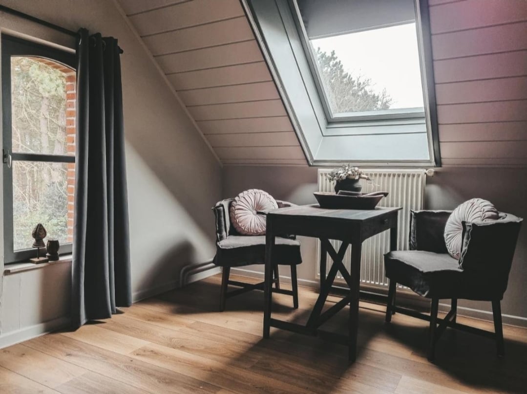 Esta encantadora propriedade tem um interior elegante com uma entrada privada. Muita luz, cozinha e uma casa de banho luxuosamente acabada. Cama de casal no andar de baixo e duas camas de solteiro no sótão. Localizado numa zona tranquila a apenas 5 minutos de carro do centro de Turnhout e a 35 minutos de carro de Antuérpia. A cidade holandesa de Eindhoven fica a 30 minutos. Se ainda quiser usar o nosso extenso pequeno-almoço buffet, o valor é de 18,00 por pessoa.