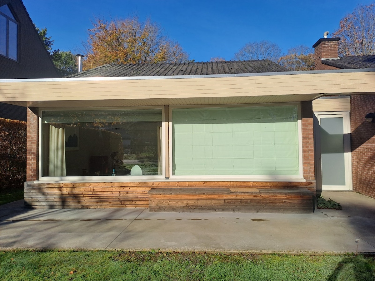 Fuja da rotina diária e desfrute de relaxamento e natureza no nosso estúdio acolhedor com sauna de infravermelhos privada, jacuzzi e terraço espaçoso. Perfeito para um fim de semana romântico ou uma estadia relaxante com a família ou amigos. O estúdio está localizado num grande jardim paisagístico com animais. Embora existam vários alojamentos na propriedade, todos desfrutam de privacidade graças ao tamanho do jardim e à plantação verde. Perfeito para casais e também para famílias!