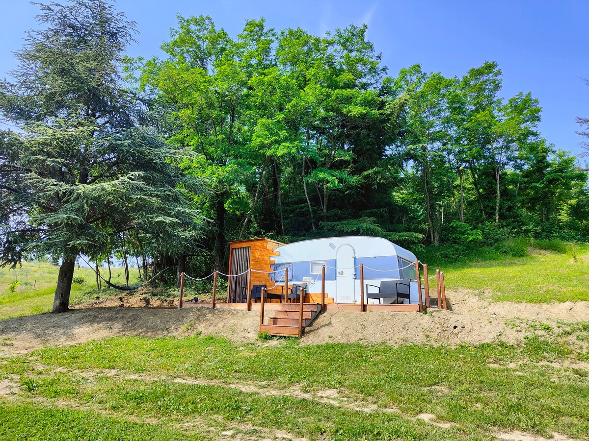 Oferecemos-lhe dentro de um jardim verdejante, uma caravana com uma cama de casal e uma cama individual, uma grande cozinha exterior equipada sob um dossel, casa de banho com chuveiro. Nós também lhe fornecemos três bicicletas, o equipamento para o mar. O acampamento fica muito perto da paragem de autocarro e da estação ferroviária.