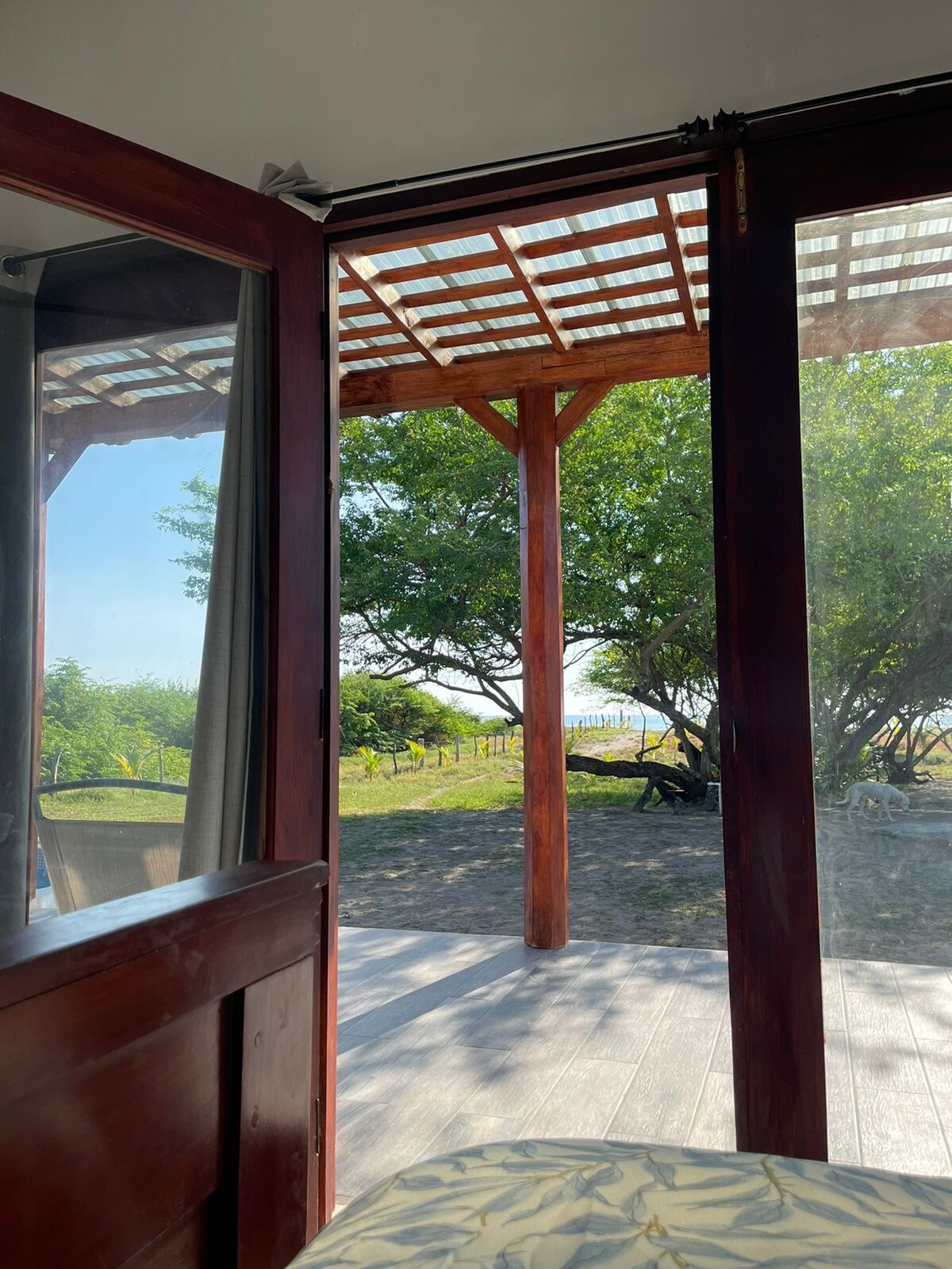 Este espaço único tem um estilo próprio. Com vista para o mar e uma brisa incrível, esta casita é o sonho tropical. Vem com todas as comodidades, como chuveiros de água quente, ar condicionado, máquina de lavar roupa e Wi-Fi, mantendo uma sensação de vida ao ar livre. Tudo nesta casa foi projetado para se orientar para a vista do mar, e a quinta de eucaliptos ao lado facilita ver para que lado o vento está a soprar para que possa ir até à praia para as sessões offshore.