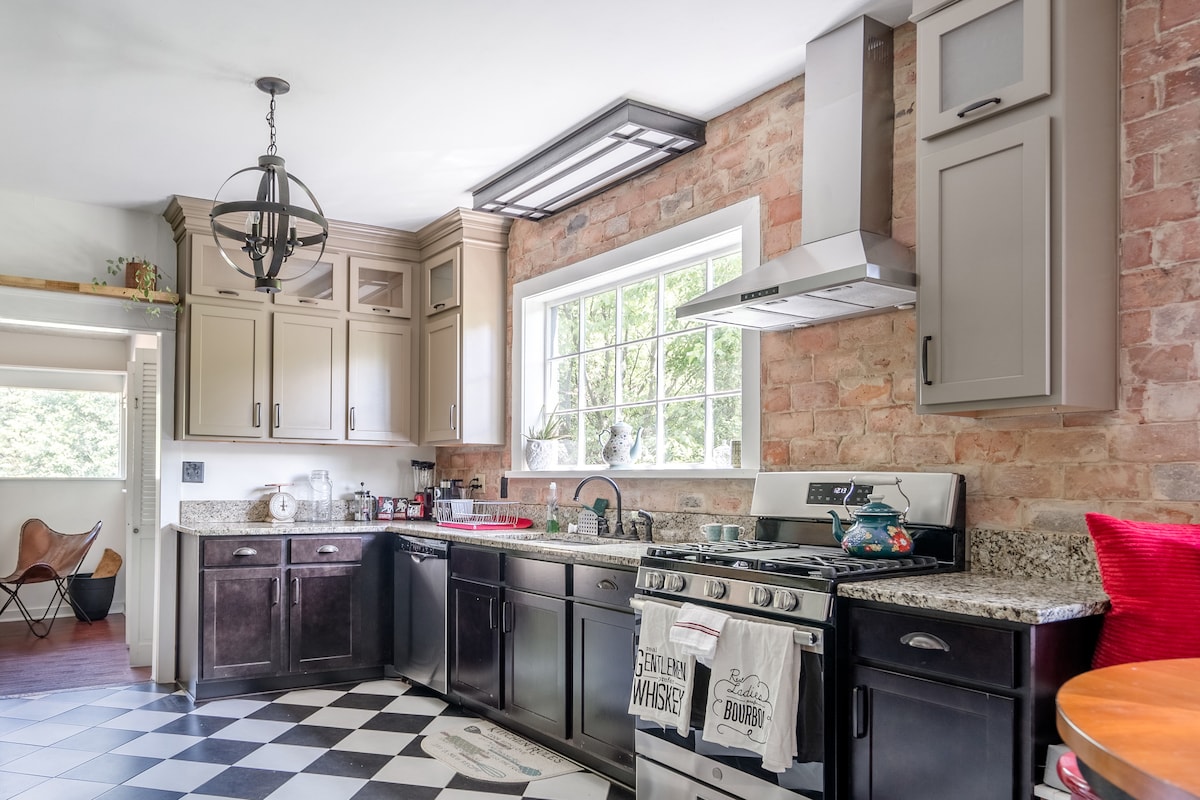 Experimente o charme vintage no Jameson Cottage, uma casa de fazenda de meados do século cercada pela natureza. • Comodidades modernas e acabamentos rústicos de madeira. • Churrasqueira a gás e lareira externa. • Dois quartos queen size, área de estar aberta e banheiro completo esperam por você. • A cozinha compacta apresenta belos armários e prateleiras abertas. • Relaxe na sala de estar ou explore o quintal com sua flora abundante. • Aproveite as comodidades, libere a criatividade culinária e delicie-se com o luxo de uma banheira com pés.
