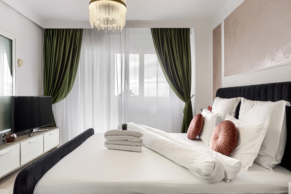 Desfrute de uma escapadela elegante e colorida no coração de Arad. Este apartamento com um design deslumbrante combina o charme retro com o conforto moderno. É ideal para casais, viajantes individuais ou trabalhadores remotos. Estará a poucos passos de cafés, lojas e marcos históricos. Cama queen com colchão de alta qualidade Cozinha totalmente equipada com máquina de café e chaleira Ar condicionado e aquecimento Smart TV e Wi-Fi Casa de banho moderna com chuveiro walk-in Roupeiro e ferro de engomar