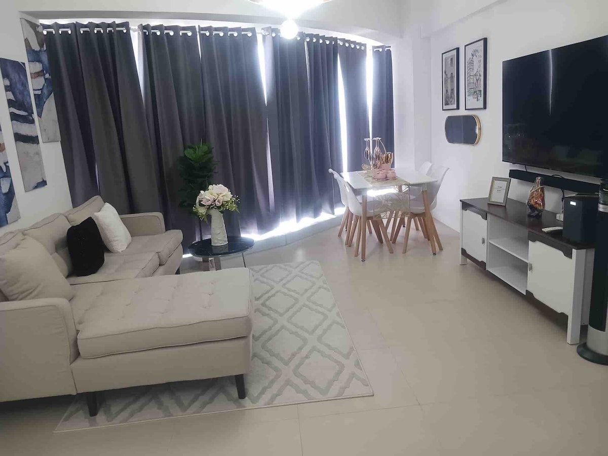Esta casa de 4 quartos tem uma sala de estar completamente climatizada, incluída; tem 3 casas de banho e espaço de estacionamento gratuito. A cozinha tem um frigorífico e está bem equipada com utensílios de cozinha, uma panela de indução, uma panela de arroz, uma chaleira elétrica, um dispensador de água e uma churrasqueira. Todo o grupo terá fácil acesso a tudo, pois a casa tem uma localização central e está aninhada entre o G Mall e o Vista Mall, ambos a uma curta distância a pé.