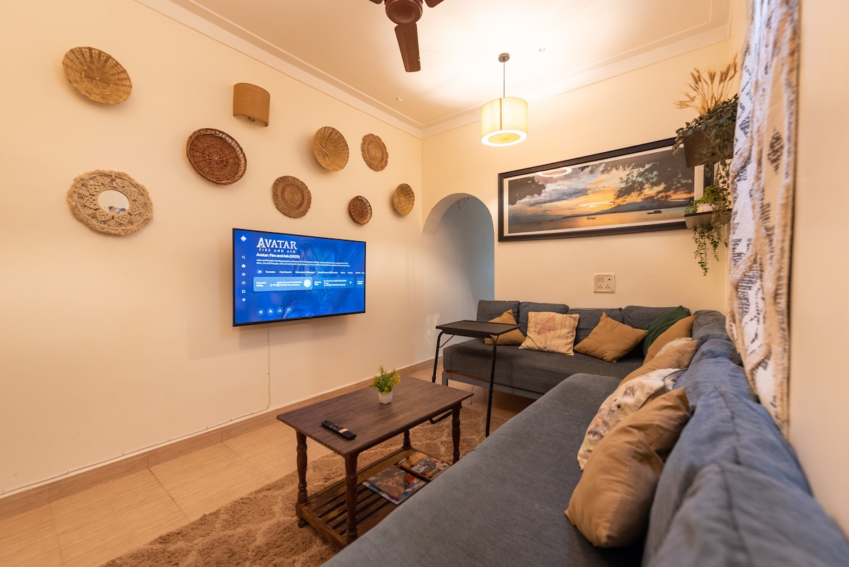 Estiloso e aconchegante 1BHK com ar-condicionado e Wi-Fi rápido