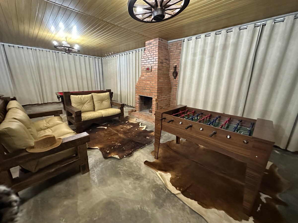 O Sítio Aerostar agora oferece uma charmosa casa de hospedagem com banheira para ter um momento de qualidade com sua familia, e aproveitar tudo que a estrutura do sítio ofece; Piscinas, cancha de bocha, parque para as crinaças, quadra, campo de futebol, trilha, sala de jogos, pedalinho, pescaria, e além de ter a experiência de entrar numa aeronave de verdade ja aposenta da Força Aérea Brasileira. Uma casa no sítio com o conforto e praticidade de estar na cidade.