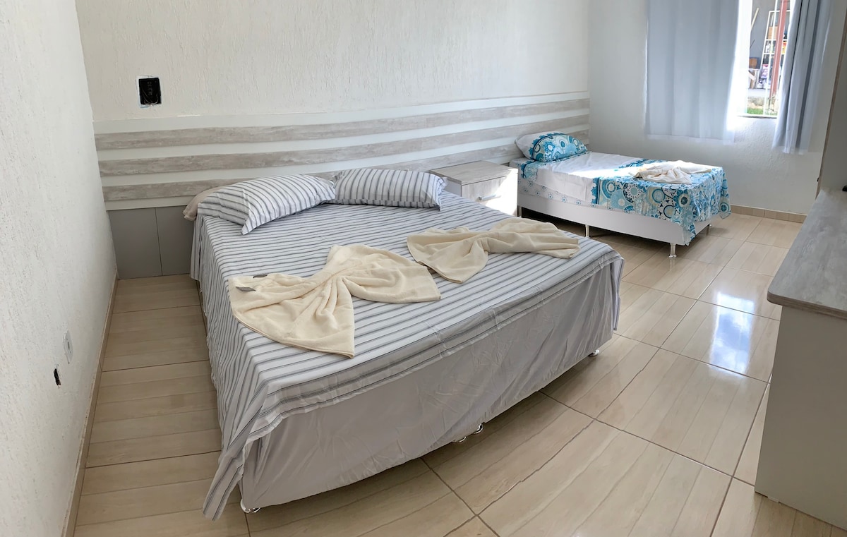Pequena Kitinete EXCLUSIVA no Centro de Araruama. Tudo o que vc precisa pra ficar confortável a passeio ou a negócio. Acomoda 3 pessoas com conforto. Segundo piso. Acesso por escada. Perto da Praia, Rodoviária, Centro, Praça João Hélio, Farmácia, Mercados. Chuveiro, máquina de lavar/secar, forno e fogão 2 bocas elétricos, geladeira, armário de cozinha, microondas, smart tv a cabo, wifi, ar condicionado, cama de casal retrátil, sofá - cama, guarda roupa e utensílios de cozinha (Todos!)