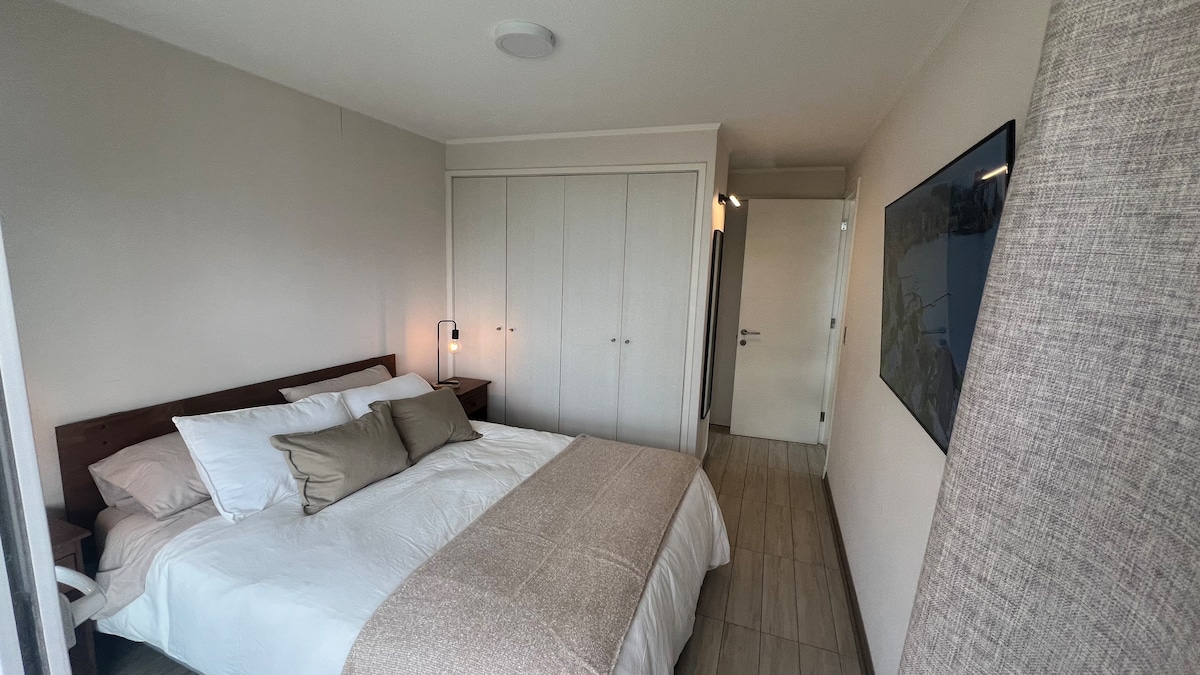 Apartamento moderno e espaçoso (9º andar), janelas com painéis térmicos, equipamentos de alta qualidade. Localizado no Km 2 Camino Villarica-Pucon, a 50 metros da margem do lago. Condomínio exclusivo de edifícios com Nautica, cais, praia privada, parques, clube com jacuzzi, sauna, sala de jogos ** Estacionamento privado (capacidade para um veículo). ** Quarto com cama king ** Departamento de Ar Condicionado de Inverno/Verão ** Vista para o lago ** A Smart TV inclui internet e tv nacional.
