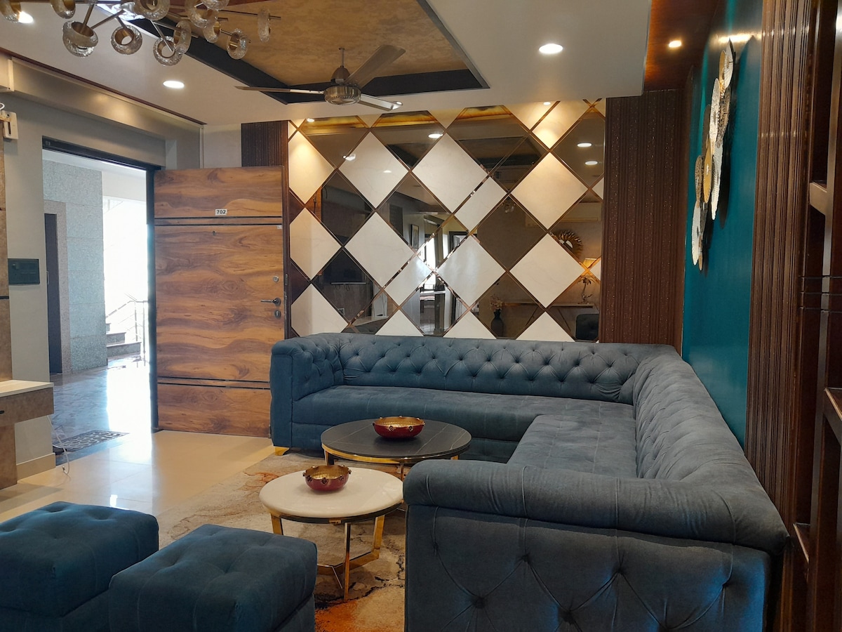Bring the whole friends & family to this great place with lots of room for fun. - All large rooms equipped with 55” inch TV. - Spacious, clean, and beautifully furnished interiors - One Room with private Swimming Pool of 225 sqft - Fast Wi-Fi & Smart TV - Fully equipped kitchen with essentials - 24/7 hot water & air conditioning - Private balcony - Easy and secure parking - Bathroom essentials- Biotique Perfect for Couples & families looking for a stylish, peaceful, and well-connected stay.