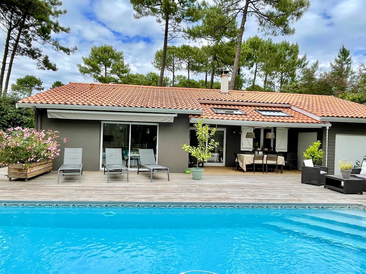 Mime-se com uma pausa de bem-estar nesta casa única, sem vizinhos, com vista para a floresta e um enorme terraço de madeira de 50 m2. Relaxe na banheira de hidromassagem embutida, desfrute das suas noites à volta da lareira, a 5 minutos do lago e comodidades e a 20 minutos da praia. Serenidade garantida 🌿