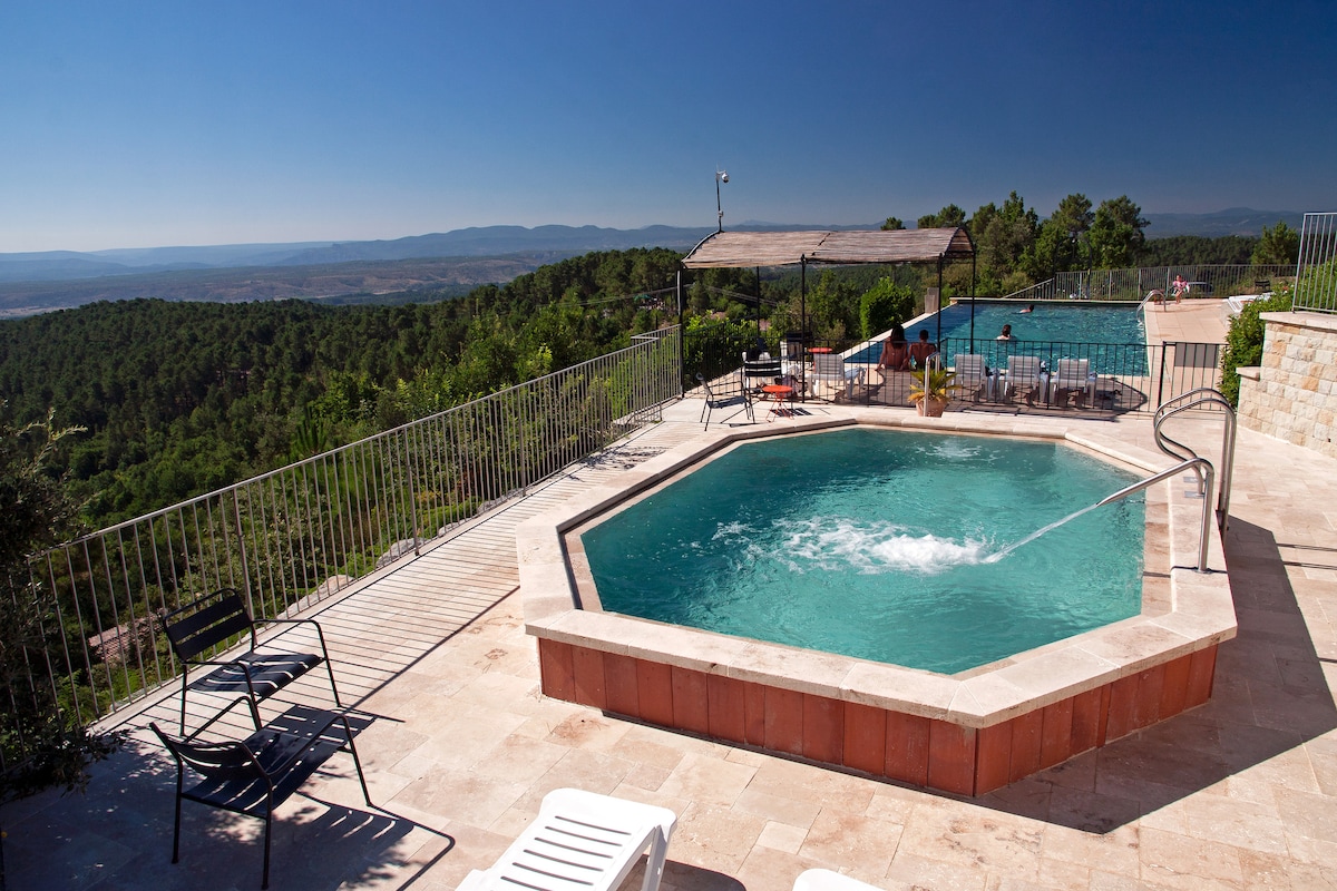 Um hotel* ** de frente para o maciço de Luberon. Você está na primeira fila de um panorama esplêndido da mítica cordilheira da Provença. Do seu quarto, do restaurante 4.27, ou da área do lounge/piscina, desfruta da tranquilidade do almoço, enquanto desfruta do espetáculo que lhe é oferecido todos os dias. Os seus anfitriões, Karine e David, dão-lhe as boas-vindas à sua equipa para deixá-lo com as memórias mais bonitas deste vasto território que se estende de Cavaillon a Banon.