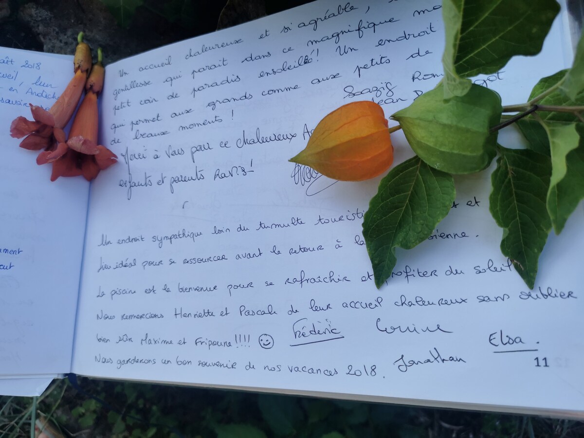 Mas de pedra encantadora, com ar-condicionado e rede wi-fi de fibra. Jardim florido e arborizado. Piscina, pomar com frutas da estação (maçãs, cerejas, marmeleiros)..Terraço sombreado, com churrasqueira e piscina adjacente. Acesso privado à floresta próxima para passeios. Área de lazer com jogos ao ar livre disponíveis: pingue-pongue, mikado, petanca. Para os esportistas, descida do Ardèche, canionismo e tênis nas proximidades. Taxas de limpeza incluídas, roupa de cama e toalhas para 6 pessoas.