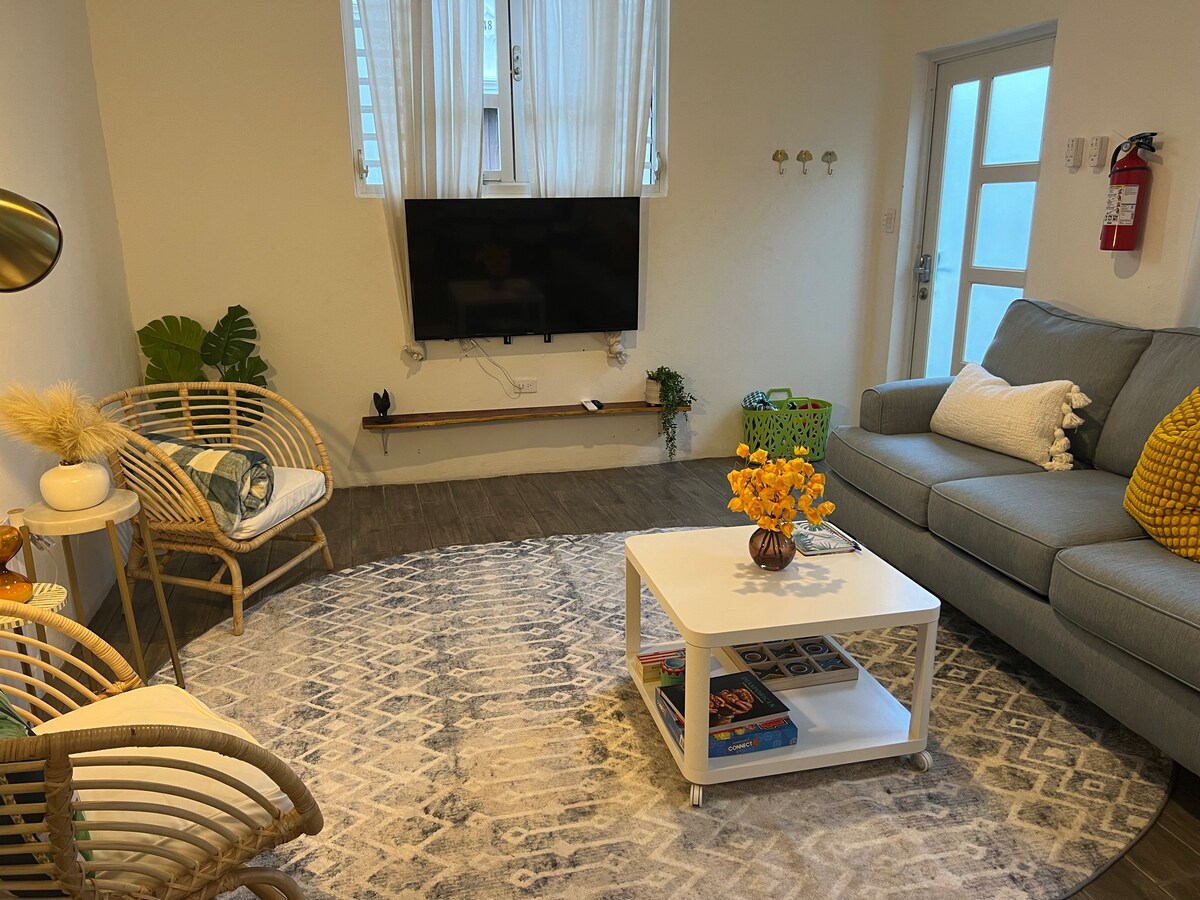 Um apartamento encantador e confortável para até cinco hóspedes localizado no centro da cidade histórica de Arecibo com estacionamento gratuito no local. Estamos a cinco minutos a pé da Plaza de Recreo e de catorze restaurantes gourmet no centro da cidade. A cinco minutos de carro da praia mais próxima, Poza del Obispo, e perto de muitas outras atrações, como o Farol de Arecibo, Cueva de la Ventana e Cueva del Indio. Observe que existem algumas escadas que levam ao apartamento.