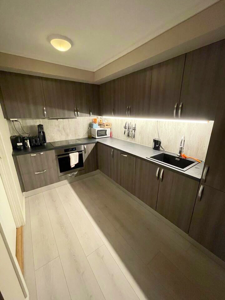 Estúdio luminoso em casa nova (2018), um quarto, casa de banho com chuveiro e máquina de lavar! Kitchenette para cozinhar! Sala de estar com sofá, mesa e cadeira, cama de casal e armário grande no quarto. Sofá-cama e possibilidade de colchão extra. Há uma máquina de café na cozinha. Apartamento e espaços exteriores adequados para crianças. Possibilidade de pedir uma cama de bebé emprestada. Perfeito para solteiros/casais, com uma criança pequena. O sofá-cama pode ser aberto, mas infelizmente é muito difícil. O estacionamento é lá fora. Sem eletricidade. Carregamento de automóveis, mas estações de carregamento nas proximidades