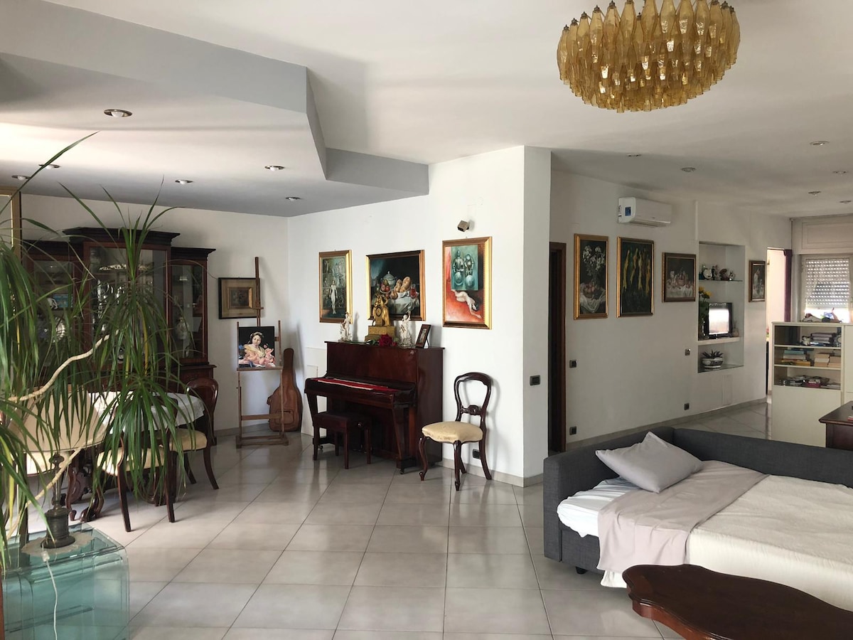 Apartamento perfeito para casais ou famílias pequenas. Elegante e totalmente equipado, com um enorme terraço com vista panorâmica. Está localizado em frente ao mar e ao Castelo. A apenas 5 minutos a pé da Piazza del Plebiscito e do cais, além disso, fica perto de paradas de ônibus, mercados, restaurantes e da estação de metrô. Muitos anos de experiência hospedando pessoas do mundo inteiro.