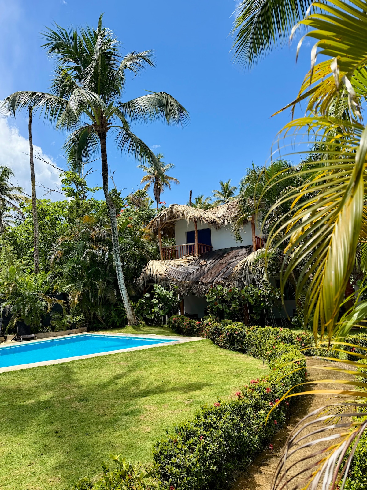 Descubra um pedaço do paraíso na nossa moradia única à beira-mar em Las Terrenas, Samaná. Situada acima de um riacho sereno que flui por baixo, esta deslumbrante moradia de madeira oferece uma mistura harmoniosa de natureza e conforto. Com capacidade para até seis hóspedes, a moradia possui 3 quartos espaçosos com 3 casas de banho completas e uma meia casa de banho adicional para sua comodidade. Desfrute de vistas deslumbrantes para o mar em toda a casa, relaxe ao som do riacho e mergulhe na paisagem tropical!