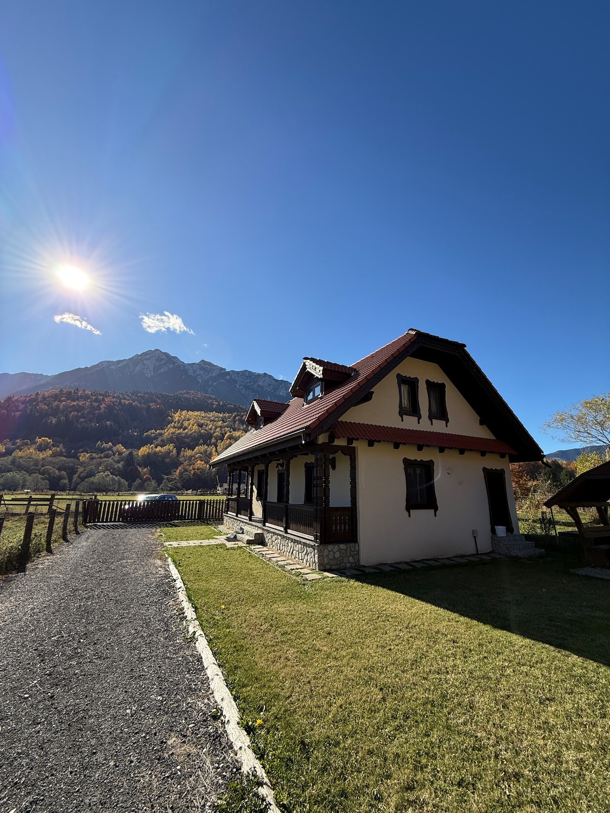 Uma localização requintada, a melhor da zona de Rucar-Bran. A casa está situada num planalto que lhe dá vistas espetaculares por toda a parte. As vistas incluem as duas enormes montanhas Bucegi e Piatra Craiului. O espaço tem privacidade e tranquilidade, o local perfeito para relaxar. É aconchegante e tranquilo, com tudo o que seria necessário. Se gosta do estilo de vida da casa da montanha com jogos de tabuleiro/televisão, um copo de vinho junto à lareira, este lugar serve-lhe. Também fica muito perto do Castelo de Bran.