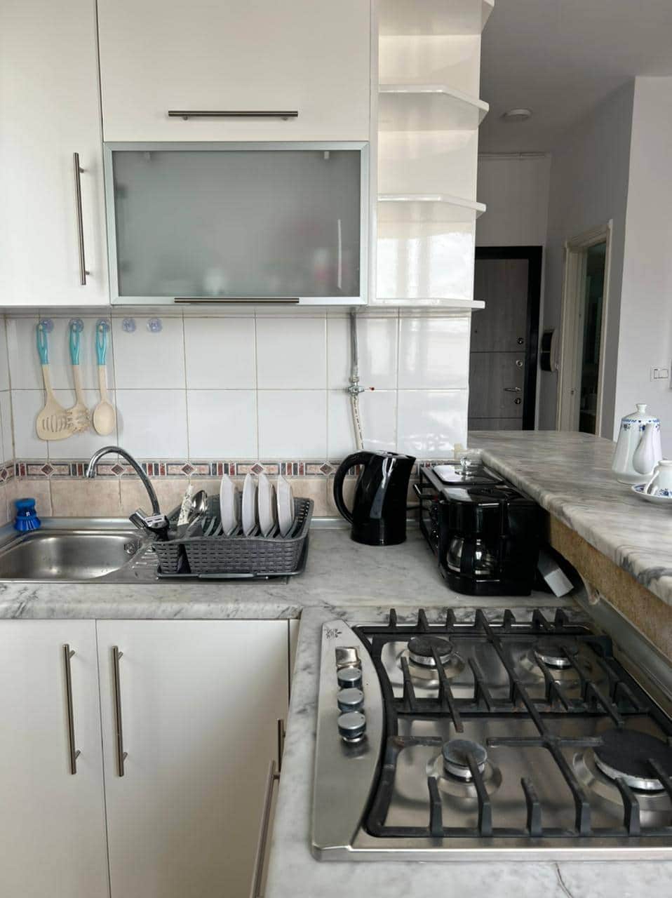 *UM quarto 🛌 com cama king size, espaço de trabalho portátil amigável e um curativo * UMA casa de banho 🛁 com bandeja de banho, velas, sabonete líquido, papel higiénico e toalhas frescas * Cozinha totalmente equipada com itens essenciais para o pequeno-almoço🍳, 🇹🇳 especiarias tunisinas caseiras para fazer comida deliciosa 🥘 * A cozinha está a abrir numa sala de estar espaçosa com sofá em forma de L, onde poderá desfrutar de ver os seus filmes favoritos 🎥 * Uma grande varanda onde pode desfrutar de um chá 🍵 da tarde com vista (a máquina de lavar 🧺 está nos cantos)
