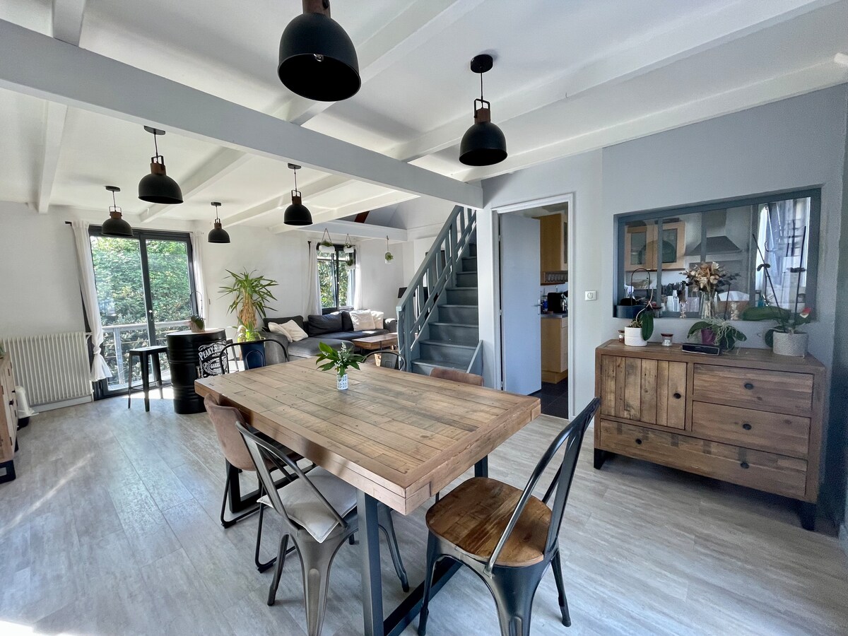 Casa agradável e acolhedora recentemente restaurada. Tranquila, está localizada às margens do Sarthe, a poucos passos de Le Mans e a 5 minutos a pé do centro da cidade de Arnage. Cozinha equipada, banheiro com banheira. Jardim, terraço grande e churrasqueira à sua disposição. O estacionamento para um carro está localizado em frente à casa.