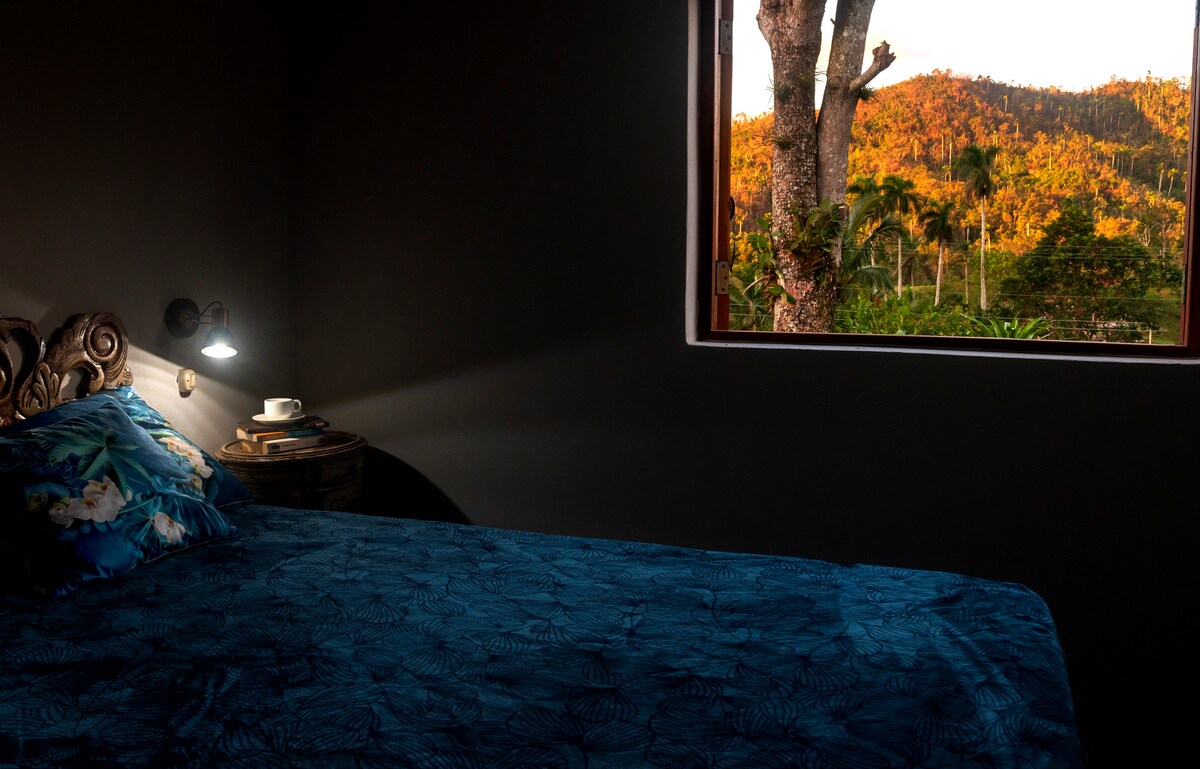 Oásis, paz e biodiversidade em um ambiente rural cubano, mas com conforto, e a apenas uma hora da capital. O canto dos pássaros, a decoração que combina elementos da história do lugar e da arte; a proximidade com mirantes e cachoeiras, a cozinha que usa produtos do próprio jardim ou de hortas locais, e é feita no estilo típico dessas montanhas, o rio com suas piscinas naturais, as vistas espetaculares e o tratamento amigável e nobre do local farão da sua estadia uma memória valiosa.