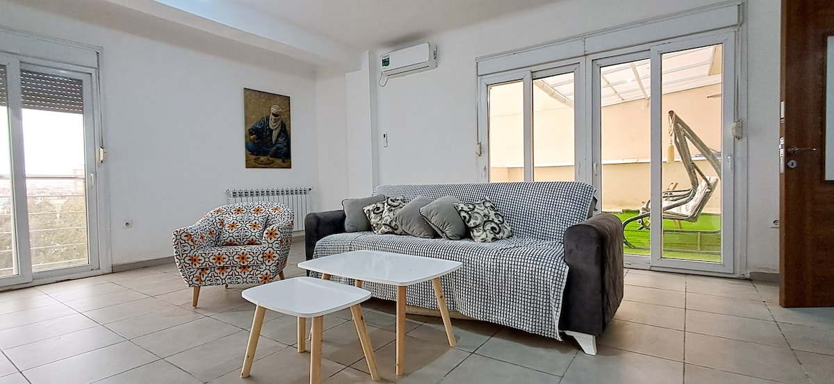Bem-vindo ao nosso apartamento idealmente localizado em Belgaid, perfeito para o receber! Localizado numa nova residência, muito limpo e supervisionado 24 horas por dia, oferece conforto e tranquilidade incomparáveis. Nota: o forno não está operacional neste momento Prós: • Wi-Fi incluído • Segurança • Netflix/TV incluída • Localização • Proximidade de todas as comodidades