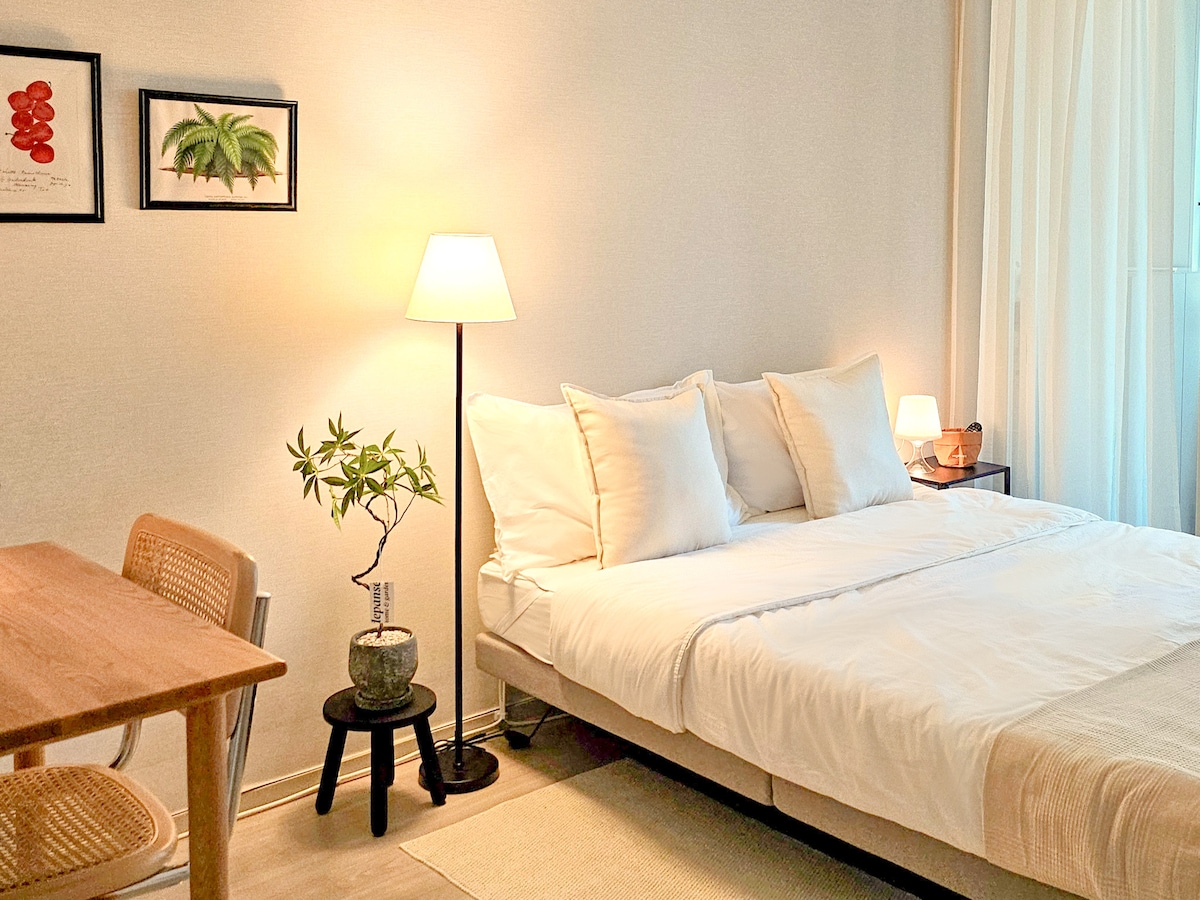 ▶ Colchão Sealy de 5 estrelas de hotel tamanho K 2EA instalado Televisão ▶ Samsung UHD Smart 75" aplicada ▶ 6 tipos de OTT (Netflix, Tving, Disney+, RafTel, Apple TV, YouTube) Purificador de ar de 15 ▶ pyeong ▶ Ar condicionado e aquecimento individuais ▶ Bidé integrado VOVO Wi-Fi individual disponível no ▶ quarto Carregador sem fios instalado▶ no quarto ▶ 100% linho funcional puro (excelente absorção de suor) ▶ É fornecido um edredão de penas de pato de alta qualidade com certificação KC