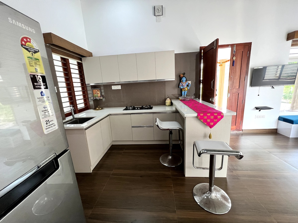 Experience true comfort at Karthika residency, a luxury home in Parakkadavu, 20 minutes from Airport and Angamaly Railway Station. Ideal for large groups, featuring 4 spacious AC bedrooms with king-size beds and attached bathrooms for 8 adults. Enjoy premium interiors, a spacious yard with seating, easy river access and more. Wi-Fi, Smart TV, power backup, parking, and more amenities.. Easy food delivery locally or through apps. Smoking indoors and pets not allowed. Self check-in process.