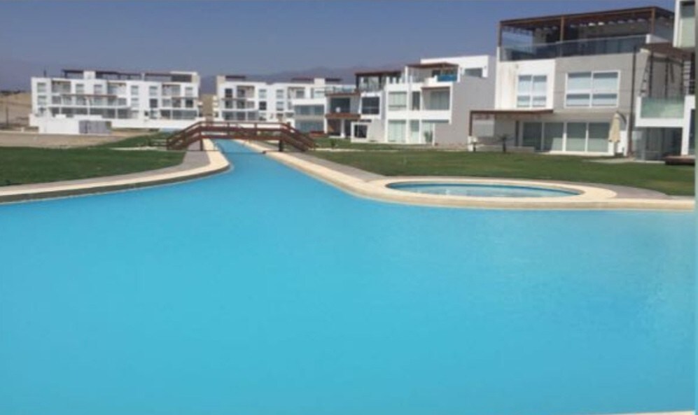 Casa de campo à beira-mar (km 84,4 Panamericana Sur). 1000m² de áreas verdes, piscina aquecida e grelhador. 6 quartos (3 com casa de banho): 5 com 2 camas de casal, 1 com cama de casal e berço; até 20 pessoas. Ténis de mesa, matraquilhos, internet e TV. Condomínio com lagoa natural, ideal para observação de aves, jogos, mercado, segurança 24/7 (restaurante de verão). Entrega Wong/Vivanda. Acesso direto à praia (ondas fortes). A 5 minutos de Totoritas e La Ensenada, a 10 minutos do Boulevard de Asia e a 30 minutos de Calango e Azpitia.