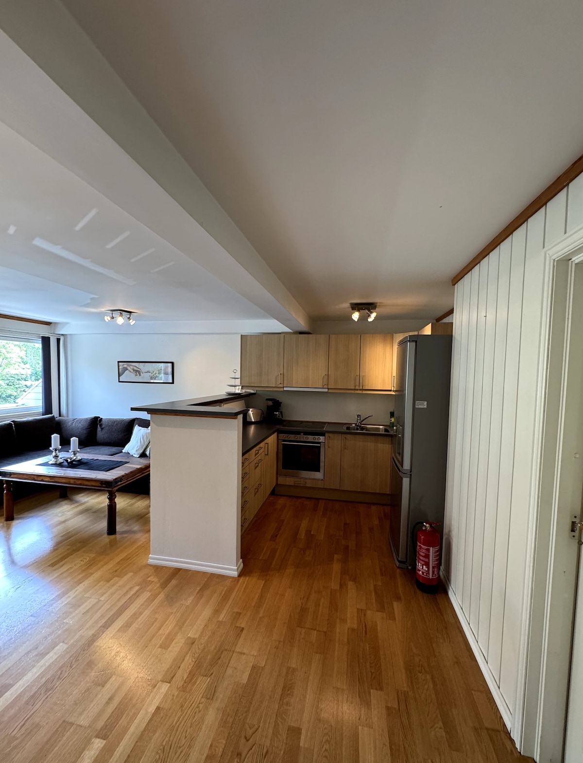 O espaço é luminoso e acolhedor, com boas superfícies de janela. Há belas vistas panorâmicas sobre o mar em direção ao centro da cidade de Bergen e arredores. Existem 3 quartos e 2 casas de banho grandes com piso de pedra natural polida. A cozinha tem 22 m2, tem vista em três direções e saída direta para o terraço n.º 1. Da cozinha, há uma solução aberta para uma espaçosa sala de estar de 45 m2 com porta deslizante de vidro para o terraço n.º 2. Preferia que os hóspedes lavassem a louça. Será calculada uma taxa de limpeza de 200 €, que será reembolsada se você se retirar.