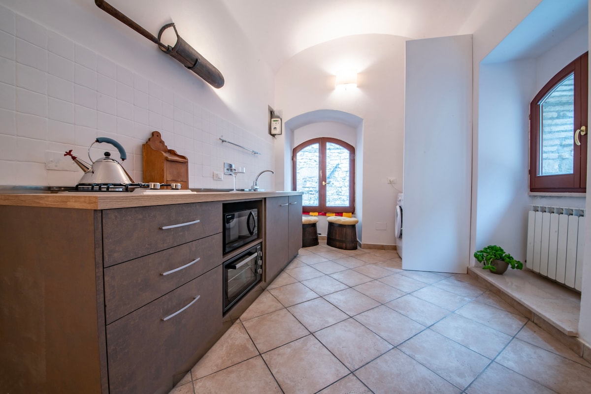 Originalmente uma casa de fazenda, este edifício medieval está localizado na tranquila parte superior do centro histórico de Spello. Nosso apartamento é perfeito para casais que procuram uma base romântica para explorar Spello e as delícias da Úmbria. Considere também nossas propriedades próximas (entrada separada) em https://www.airbnb.com/h/amiciefamiglia ou https://www.airbnb.com/h/ilmuretto se você precisar de quartos adicionais para hóspedes.