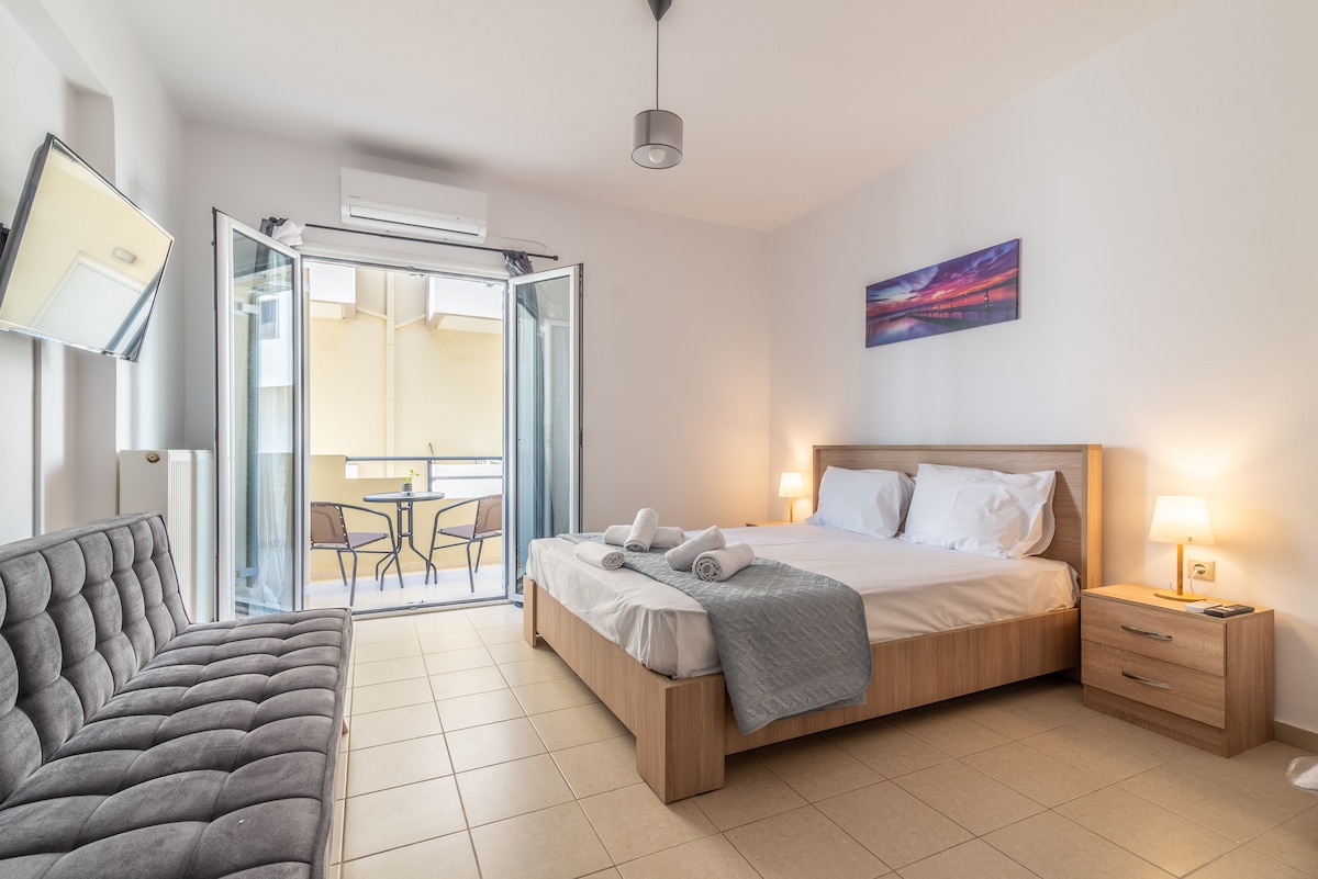 Descubra a magia de Heraklion hospedando-se no nosso espaço! Desfrute do conforto de um apartamento moderno, em um bairro animado repleto de tabernas e cafés tradicionais. Da confortável cama de casal à cozinha totalmente equipada, cada canto do nosso espaço oferecerá relaxamento e aconchego. Com o nosso serviço e fácil acesso aos pontos turísticos, você viverá uma experiência inesquecível no centro da cidade!