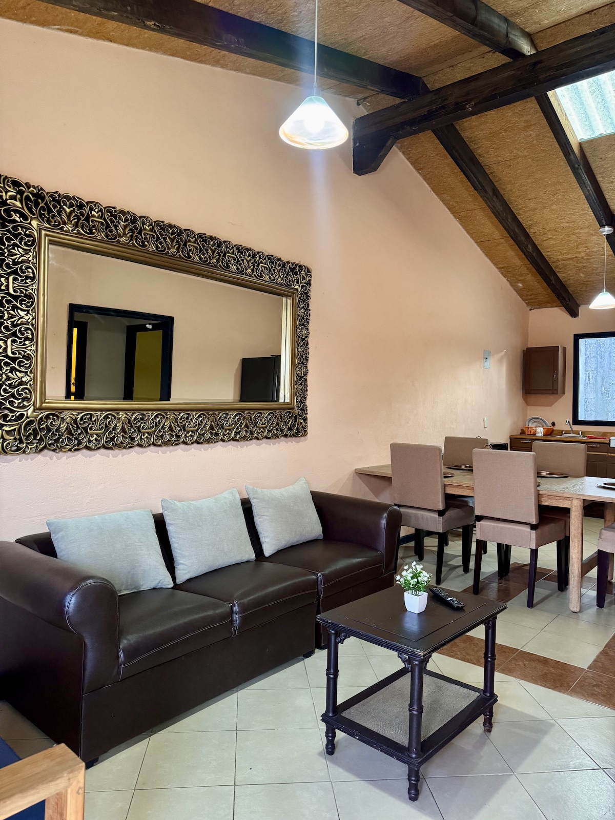Buscas un lugar tranquilo y comodo ven y relájate con toda la familia en esta cabaña en el bosque donde la naturaleza y la tranquilidad se respira. Disfruta de un amanecer maravilloso en la comodidad de tu cabaña o de una fogata bajo las estrellas.