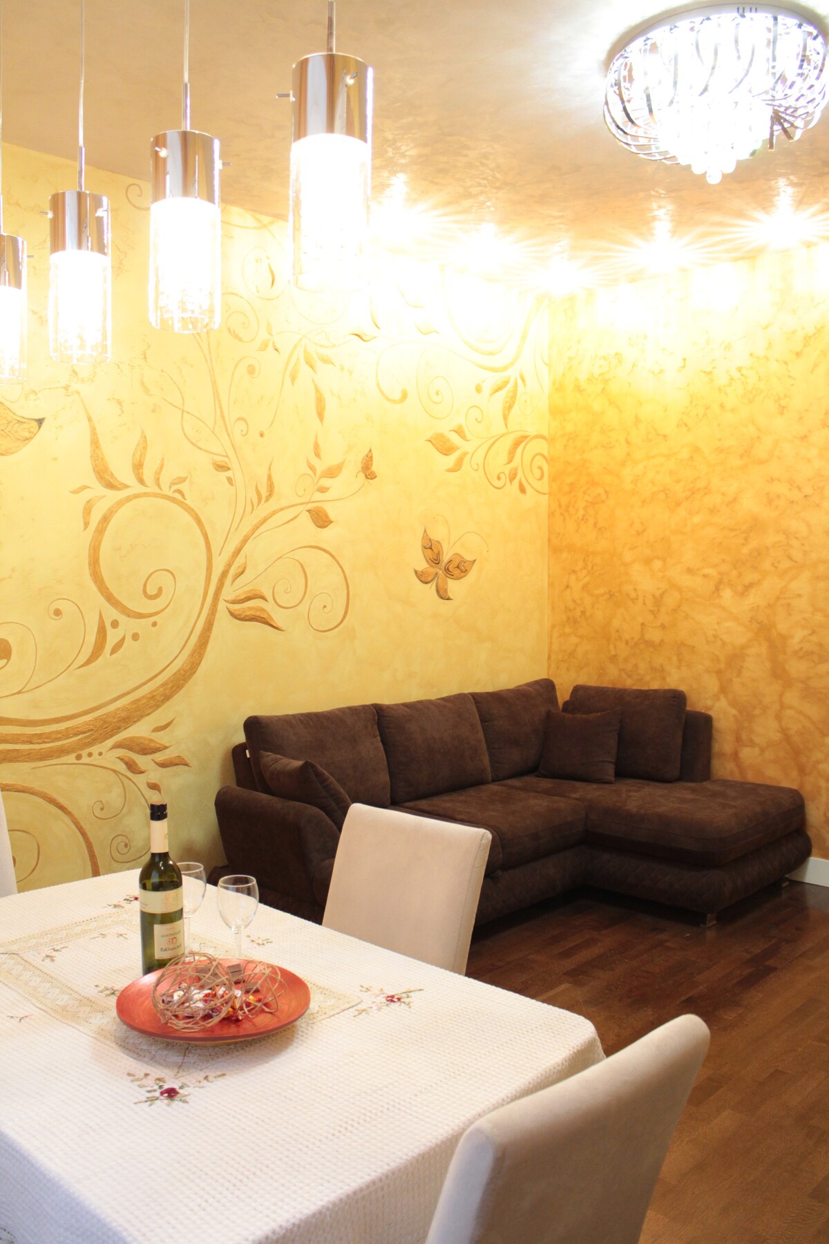 Oferecemos "Art apartment" moderno recentemente renovado no novo edifício com todas as comodidades. Apartamento criado com muito amor e atenção às pequenas coisas. 1 quarto com cama de casal e 1 sofá-cama na sala de estar. Banheiro e cozinha estão totalmente equipados. Acomoda confortavelmente 4 pessoas. Todos os materiais usados são de alta qualidade. Decoração de parede, objetos decorativos feitos à mão. Parada de ônibus e estação de metrô estão nas proximidades, a 3-5 minutos de distância. Você pode chegar ao centro da cidade em 7-10 minutos.