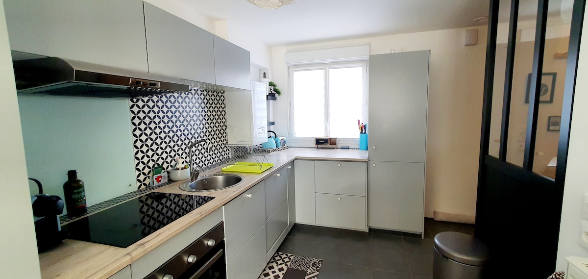 Damos-lhe as boas-vindas calorosamente às " cerejeiras", aninhadas em Wallers, num cenário tranquilo e verde. Casa de 90m² com acesso independente. Rés-do-chão: cozinha equipada, máquina de lavar louça, máquina de lavar roupa, frigorífico congelador, forno, micro-ondas, placa de cerâmica + sala de estar com sofá , TV + casa de banho + Quarto com 1 cama de casal. Piso: 1 quarto com 1 cama de 120x190cm e 1 cama 90x190cm, 1 quarto com 2 camas de 90x190cm. Vista para o jardim Wi-Fi.