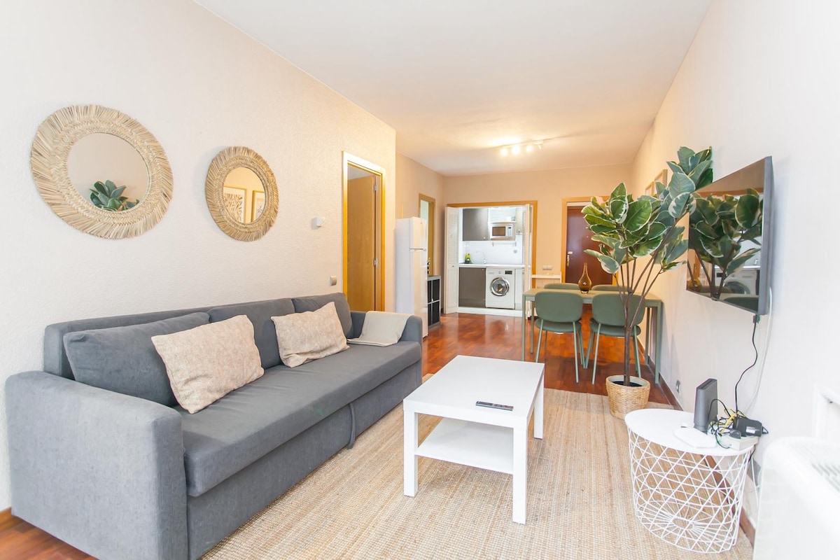 Bem-vindo ao nosso estúdio funcional e moderno em Madrid, localizado a 10'a pé da área da Plaza Castilla, muito perto do metro e dos autocarros. Este estúdio minimalista tem uma cama de casal e um sofá-cama confortável para um total de 4 pessoas, também tem um espaço diáfano que foi concebido para aproveitar ao máximo a luz natural e a sensação de espaço. Equipado com tudo o que precisa para a sua estadia, é o alojamento perfeito para viagens de negócios ou turismo.