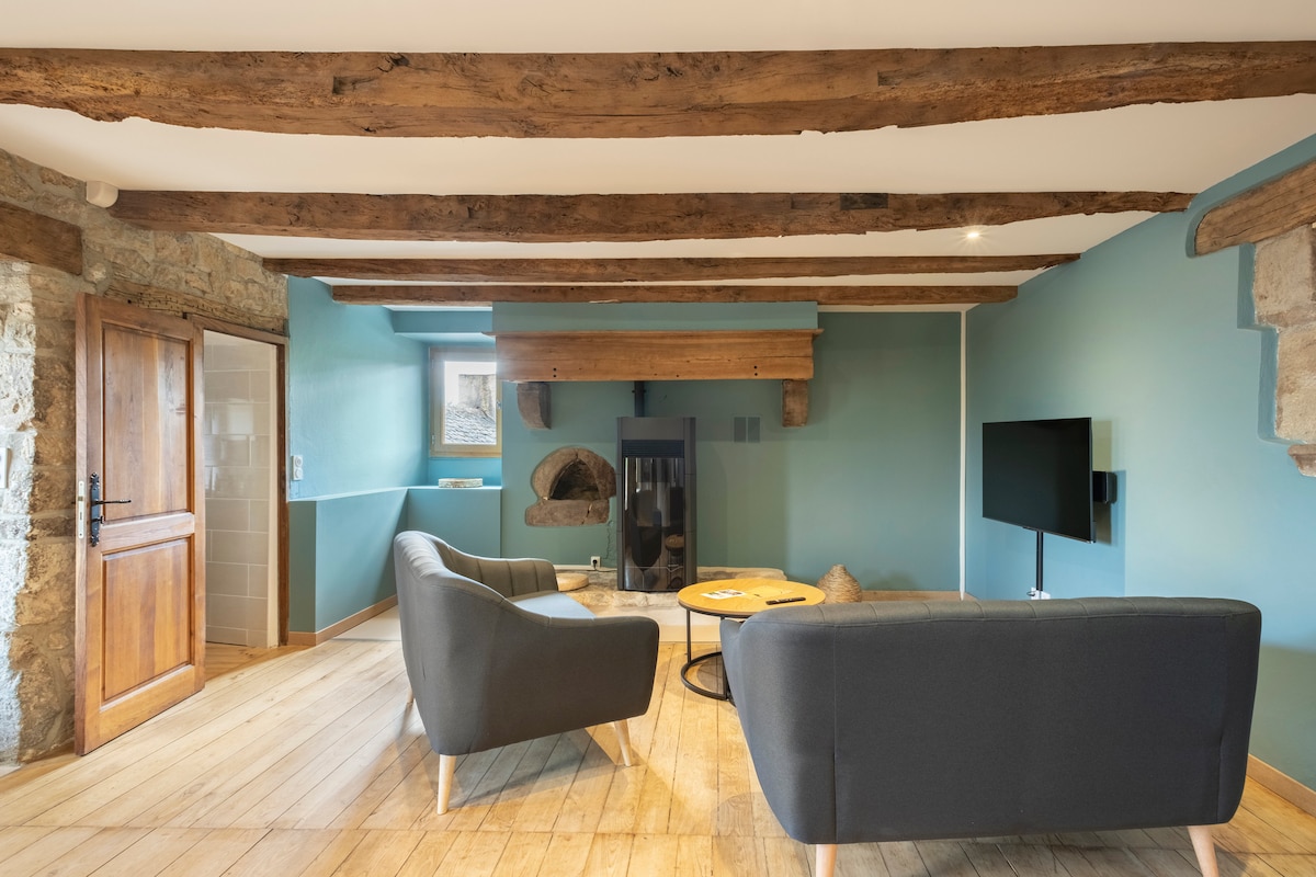 Fique no coração de Laguiole neste loft elegante e tranquilo! Desfrute de um ambiente refinado com 2 quartos confortáveis, uma bela sala de estar com cozinha aberta e terraço com uma vista relaxante. Relaxe com matraquilhos e um fogão a pellets. Perto de lojas e trilhos, explore Aubrac a pé ou de bicicleta, saboreie o aligot e viva tradições locais como a Transumância. Uma estadia inesquecível está à sua espera!