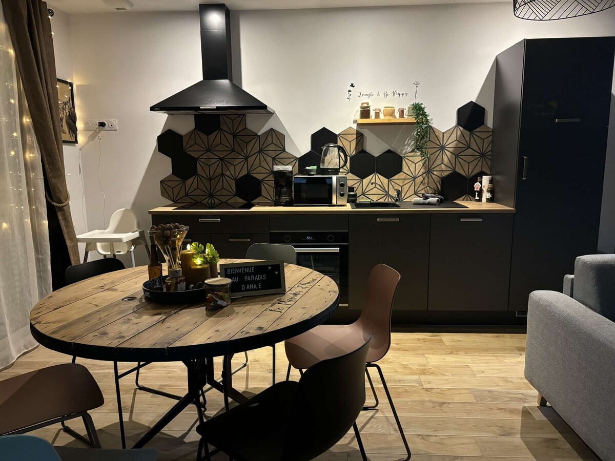 Situado numa antiga quinta, o Le Cottage é um quarto para hóspedes totalmente renovado e com ar condicionado, concebido para lhe proporcionar um verdadeiro momento de evasão. Desfrute de um espaço intimista e confortável com muitas comodidades dedicadas ao seu bem-estar. ✨ Spa privado com banheira de balneoterapia, sauna de infravermelhos Cafeteira e chaleira (chá e café disponíveis) Frigorífico e microondas 🔊 Coluna Marshall Retroprojetor com acesso ao YouTube, Netflix, Disney+ e canais Canal+