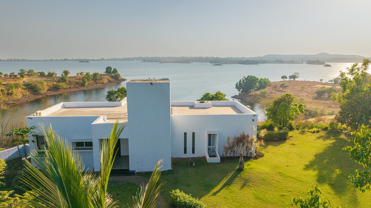 Moradia de madeira de 6 quartos. Situada nas margens do Lago Vaitarna, esta obra-prima arquitetónica oferece vistas deslumbrantes, interiores elegantes e uma fuga serena da agitação da cidade. A piscina infinita de 13 metros tem vista para o lago. Cada quarto de seis quartos abre-se para vistas deslumbrantes, permitindo-lhe acordar diariamente com a natureza. A moradia dispõe de uma sala de estar com ar condicionado, um amplo relvado privado e jogos interiores, incluindo uma mesa de bilhar e uma mesa de ténis de mesa. Os funcionários internos estão a torná-lo num destino de lazer completo.