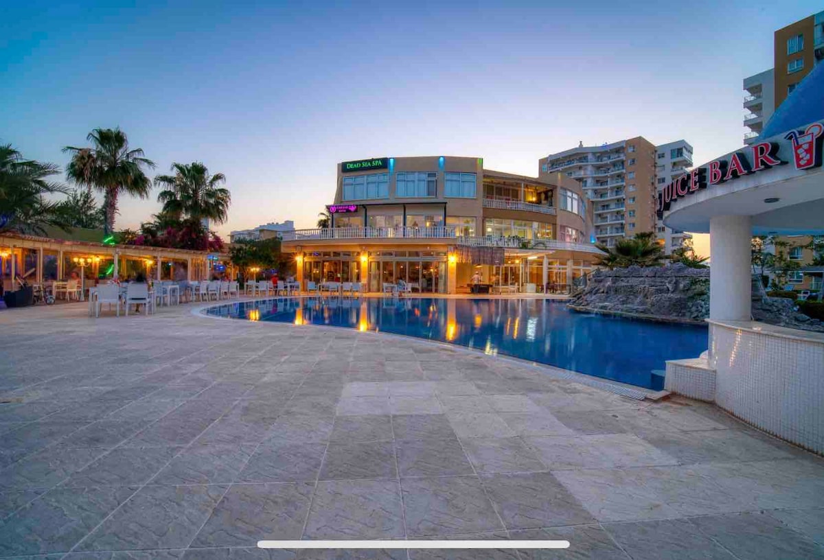 Enjoy the experience at this lovely one bedroom flat at the best location. This is a new built modern flat in a residence complex with balcony where you can sit and enjoy wonderful views of the Mediterranean Sea. All the space is fully air conditioned. You can park easily at apartments private parking space. 5 minutes walk to beautiful sandy beaches & unique Ghost Town Varosha (Kapalı Maraş). Restaurants and bars are in 4 minutes, ancient Famagusta Old Town in 10 minutes walking distance.