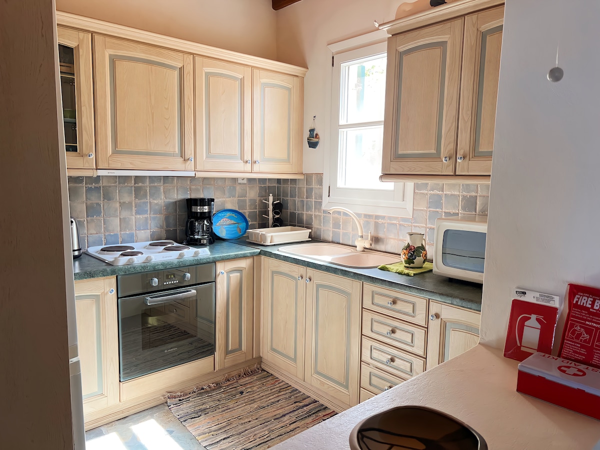 Localização idílica na encosta da costa com vistas magníficas e infinitas do mar azul! Apartamento de dois quartos totalmente equipado, com saída para o pátio com churrasqueira. Tem 65 m², tem dois espaços, um é de 40 m² com quarto, banheiro e uma cozinha em plano aberto/sala de jantar/sala de estar com sofá-cama de casal. O segundo espaço tem uma cama de casal, guarda-roupas e um banheiro de 25 m². As portas levam diretamente ao pátio com vista para o mar. Além disso, o pátio tem uma churrasqueira de pedra e um forno tradicional.