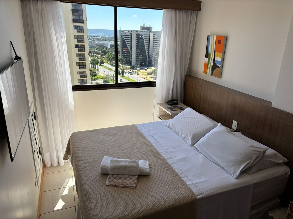 Hospede-se com a praticidade de um hotel associada ao conforto de um apartamento diferenciado. Flat totalmente reformado, moderno, espaçoso e pensado nos mínimos detalhes. Possui todas as facilidades que se pode encontrar numa hospedagem, inclusive com itens de conforto muito valorizados em estadias mais longas. Conta com limpeza diária e com localização privilegiada no centro de Brasília. A hospedagem é ideal para solteiros ou casais que estejam visitando a cidade a lazer ou a trabalho.