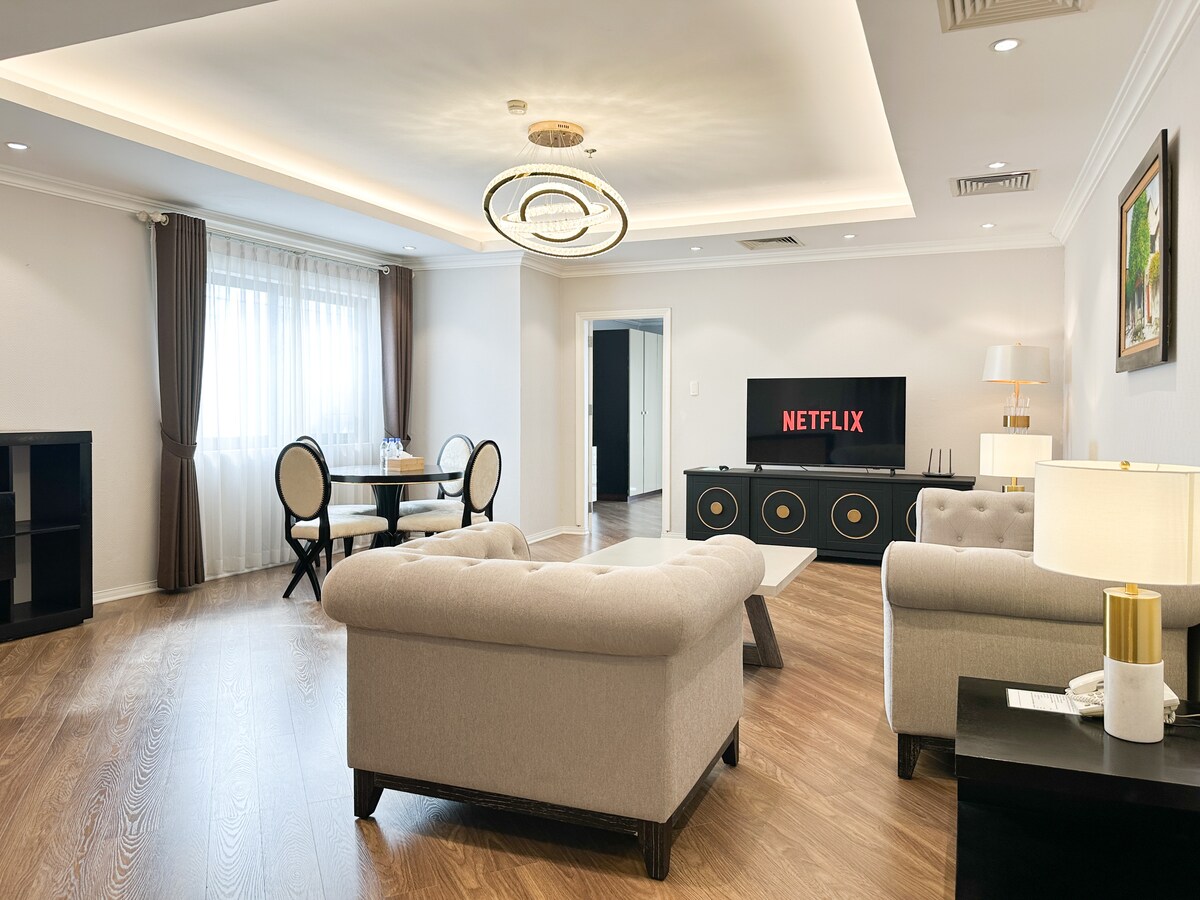Experimente o luxo acessível no nosso apartamento com serviços completos no coração de Hanói. Os hóspedes adoram o nosso ambiente calmo do lago, mas estamos apenas um pouco longe da agitação da encantadora cidade velha. Desfrute de delícias gastronómicas em restaurantes próximos e comodidades de alto nível. Os nossos serviços incluem serviço de limpeza, segurança 24 horas por dia, 7 dias por semana, um quarto dedicado para crianças, um ginásio bem equipado e uma piscina. Descubra um valor excecional pelo seu dinheiro neste cenário notável.