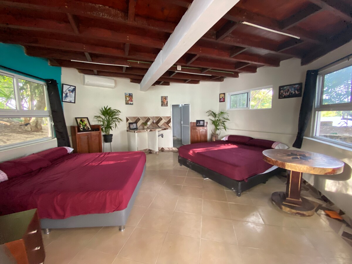 departamento blue coral es uno de 5 departamentos que hay en el lugar, el cual se encuentra en la planta alta del primer edificio , cuenta con baño y cocina privada y entrada independiente y se encuentra frente a la Laguna de los 7 colores , contamos con un muelle del cual puedes disfrutar! Nos encontramos a un kilómetro del parque central y fuerte de San Felipe ( museo).
